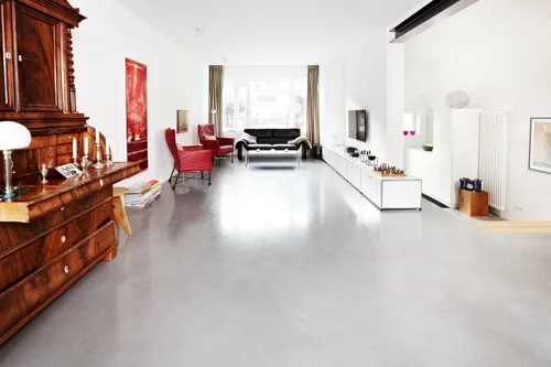 Polierter Industrieboden, optimal für die gewerbliche Nutzung wie hier in der Hamburger Galerie Feinkunst Krüger.